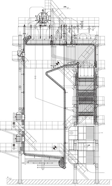 锅炉适用于大型燃油气蒸汽热水锅炉,采用全散装结构,现场安装。可实现燃天气(油)大容量高参数锅炉。